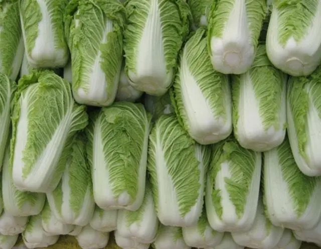 從田里采收好的大白菜,應(yīng)挑選菜棵健康的入庫(kù),大白菜植株外觀直立時(shí),其外葉下垂而不會(huì)折彎。